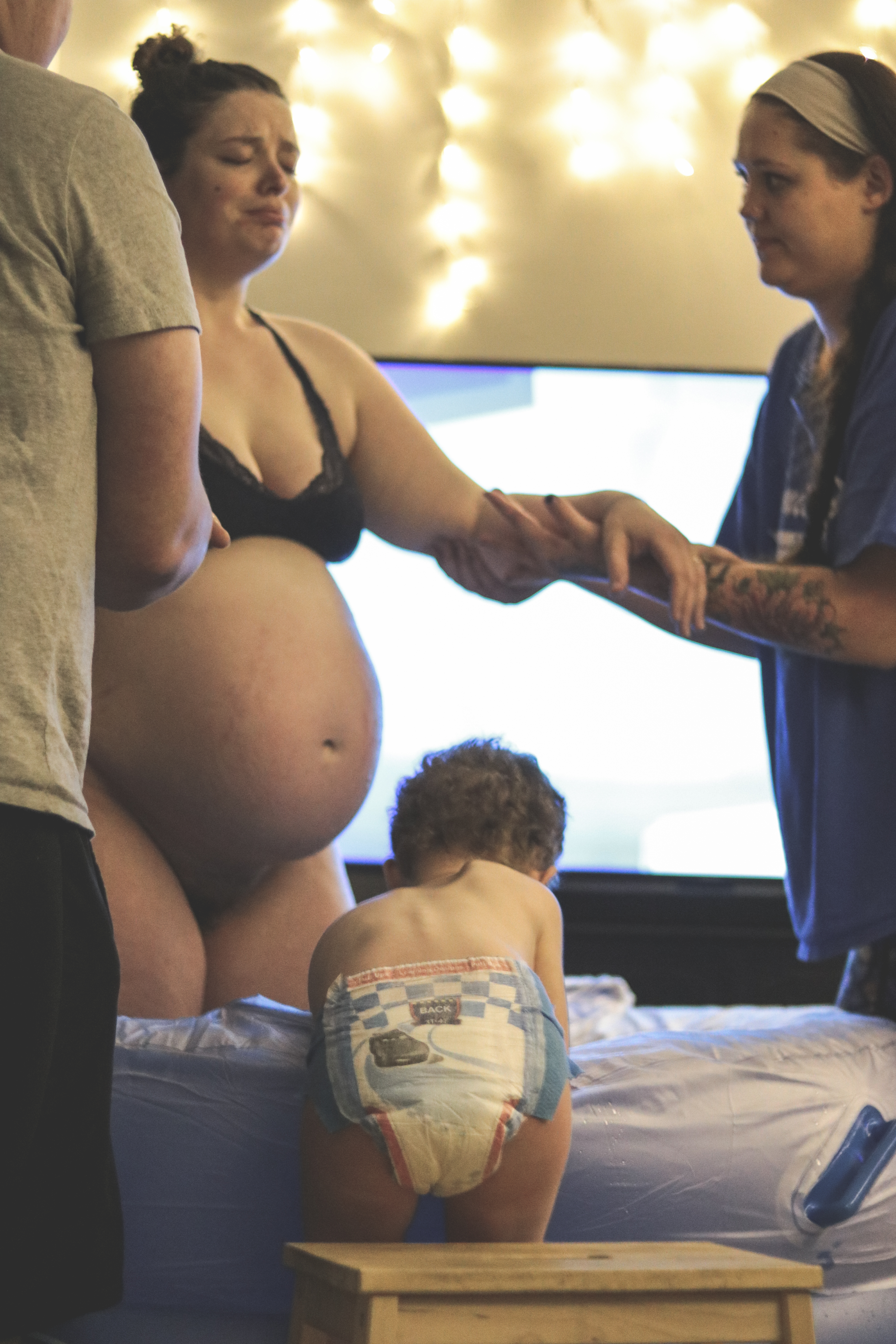 Birth really is women’s work I mused in that moment. And then Oh God, my husband likes to sleep naked… “Morgan, he might not have pants on!” I called after her, just before another strong urge to push overtook me. Yep, definitely feeling a little pushy.