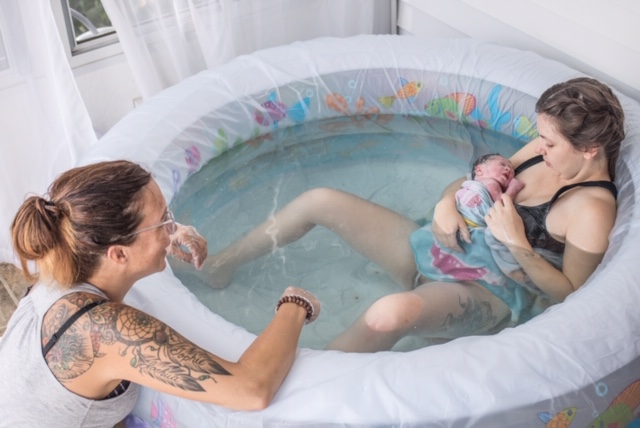 I made my way to the pool and shortly after my midwife assistant and sister arrived. I was working hard now and starting to push.